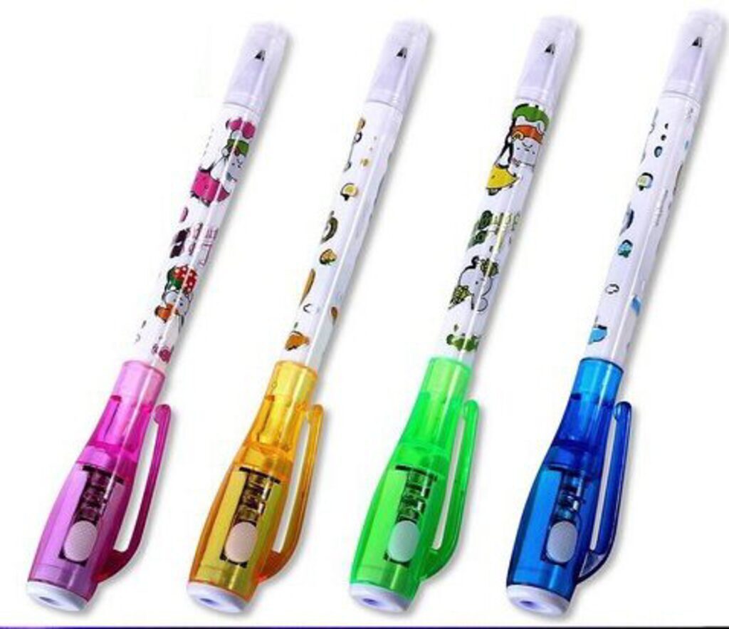 Ручка-Шпион пишет невидимыми чернилами, увидеть их можно только при помощи ультрафиолетового фонарика, встроенного в колпачок, стоит его включить и направить на место секретной надписи, как все тайное станет явным. Использовать ручку невидимку можно для написания шпаргалок, пометок и секретных посланий. УФ-фонарик работает от 3 сменных батареек AG3 (в комплекте)