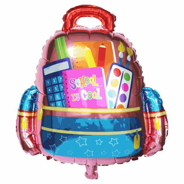 Сложная, объемная фигура в форме забавного школьного рюкзака с надписью School is cool (Школа - это круто). Рекомендуется наполнять гелием. Имеет встроенный клапан - что упрощает надувание. Тонкая миларовая (фольга на полиэтиленовой основе) пленка позволяет шарам не сдуваться от недели до одного месяца. Упакован в красочный пакет, с цветным изображением шара, что позволяет выставлять товар в ненадутом виде.