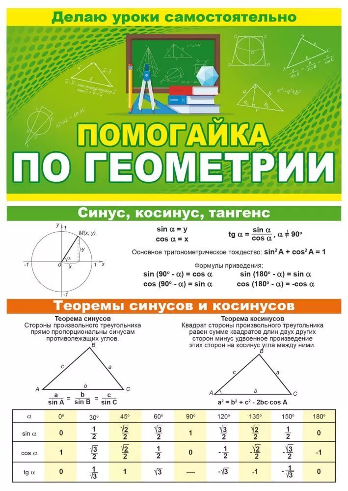 Шпаргалка 210*150мм "Помогайка по геометрии"