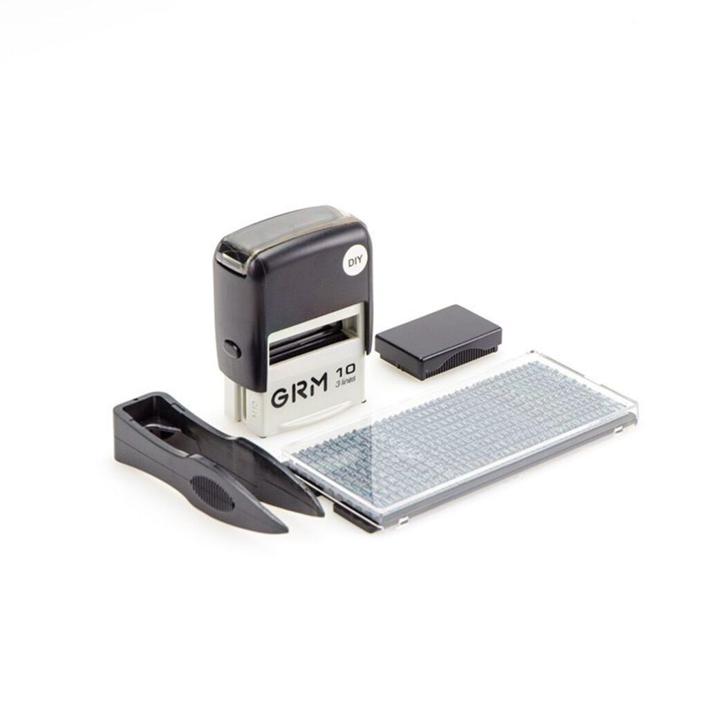 Штамп предназначен для проставления оттиска набранного текста. Используется в качестве информационного или адресного штампа. Размер оттиска 26*9 мм. Максимальное количество строк 3. В комплекте касса букв и цифр, пинцет, сменная штемпельная подушка синего цвета. Корпус снабжен прозрачным верхним окном для идентификации оттиска.