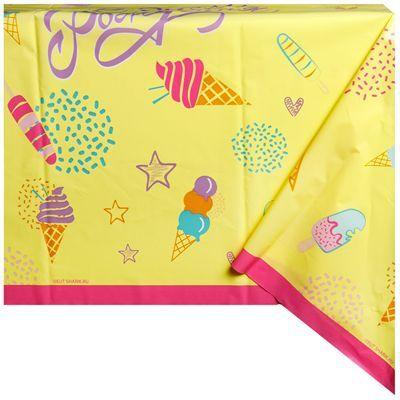 Скатерть полиэтиленовая С Днем Рождения Мороженое, размер 130х180см. Используется совместно с другими элементами коллекции (тарелки, стаканы, салфетки ) как украшение стола или по своему непосредственному назначению.