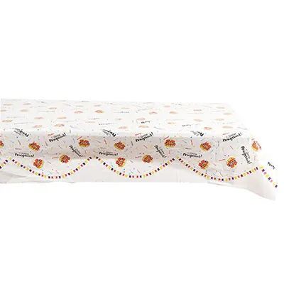 Самый настоящий домашний торт – выпеченные коржи, пропитанные вкуснейшим кремом, облитые ароматной глазурью. Гаснет свет,…и вот вносят торт с зажженными свечками! Скорее загадывай желание и задувай их все! С днем рождения! Скатерть размером 130х180 см выполнена из полиэтилена.