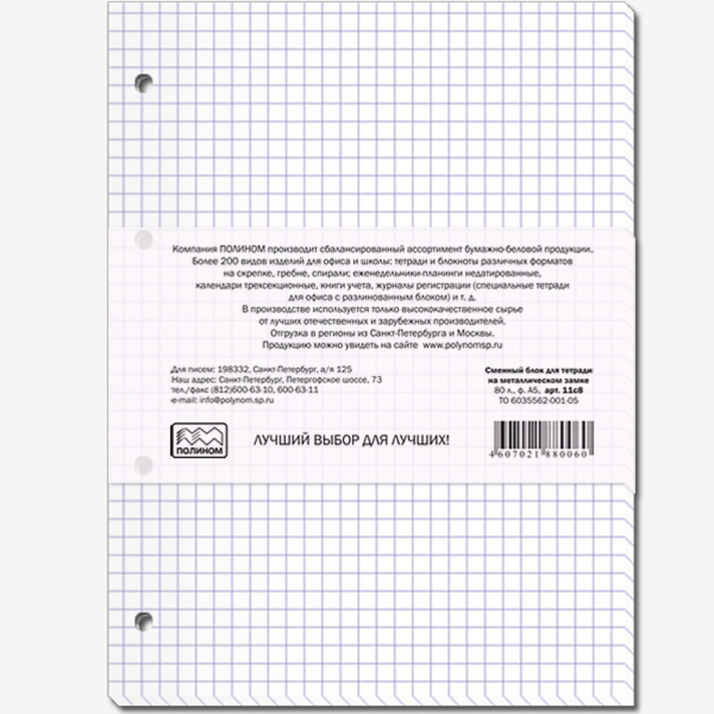 Сменный блок А5 80л кл. Полином "Белый", БЕЗ ПОЛЕЙ