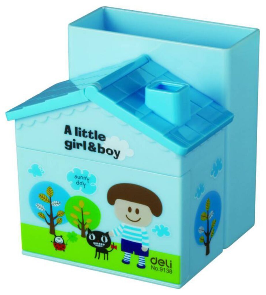 Оригинальный настольный набор в виде домика. Состоит из 4 отделений, цвет ассорт Размер 9*8,5*9,5 см Подставка для пшущих предметов различных цветов. Подойдет для тех, кто устал и больше не хочет тратить время на поиск нужного карандаша или ручки. Домик для пишушихх предметов поможет поддерживать порядок на рабочем столе.