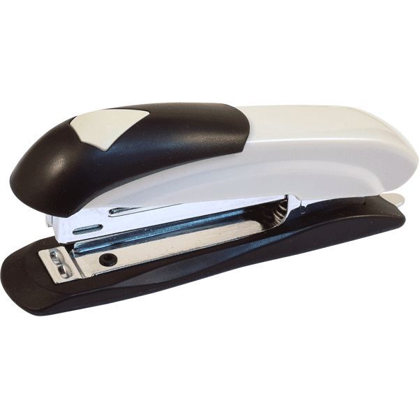 Степлер "Attomex" № 10 (мощность 12 листов, глубина скрепления 55 мм) пластиковый, со встроенным металлическим антистеплером, в картонной коробке, серо-черный