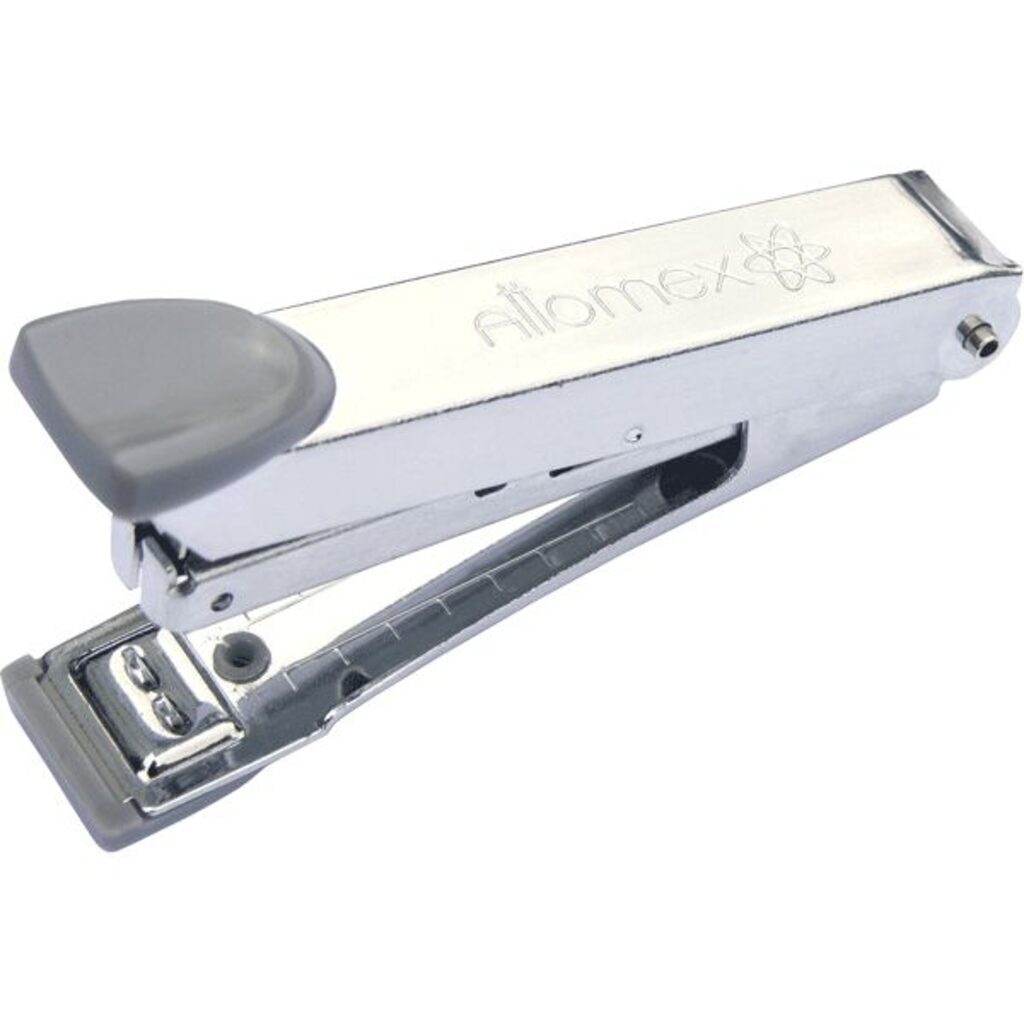 Степлер "Attomex" № 10 (мощность 15 листов, глубина скрепления 35 мм) металлический, со встроенным металлическим антистеплером, в картонной коробке, серый