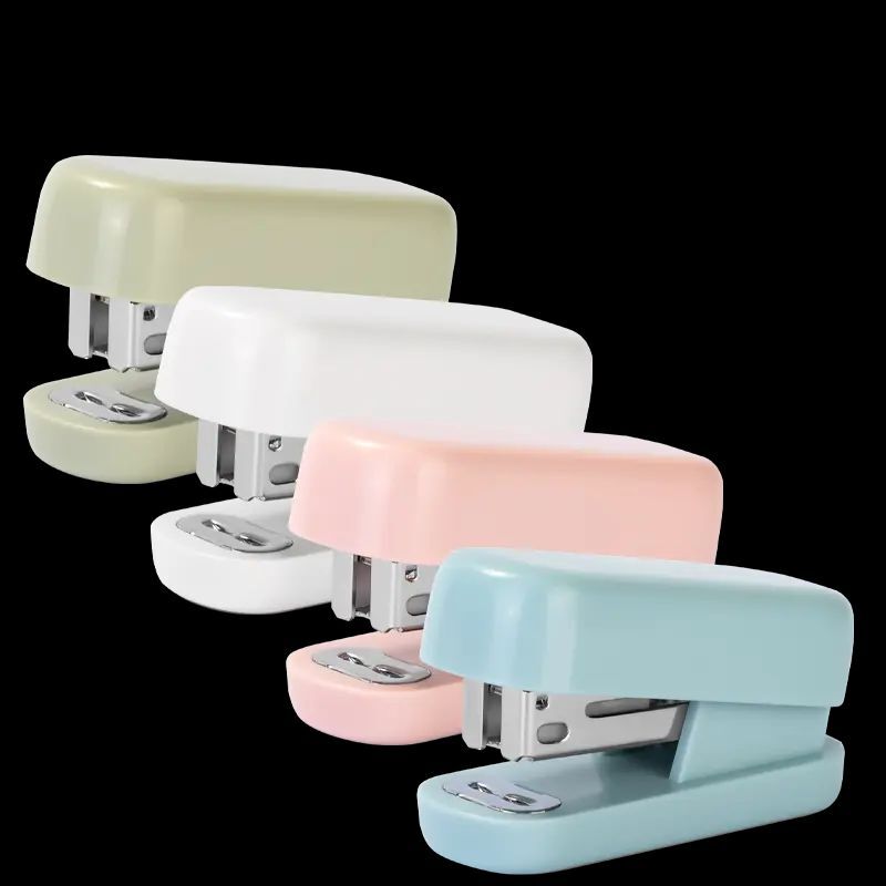Компактный и портативный степлер Deli в комплекте со скобами и встроенным антистеплером.