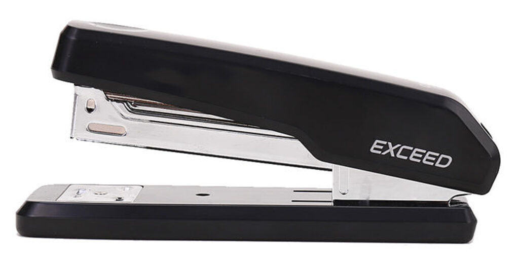 Степлер не скользит, что позволяет легко зафиксировать его положение и аккуратно скрепить листы.