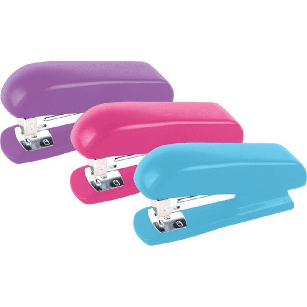 Степлер "deVENTE. Soft touch" 24/6&26/6 (мощность 20 листов) пластиковый с бархатистым прорезиненным покрытием, в картонной коробке, ассорти 3 цвета (фиолетовый, голубой и розовый) Глубина загрузки бумаги: 55 мм