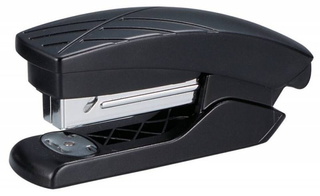 Степлер KW-TRIO №24/6 на 20 листов со стальным механизмом и пластиковым корпусом черного цвета оригинальной формы.Глубина сшивки 71 мм,вмещает 50 скоб №24/6,сшивает до 20 листов.