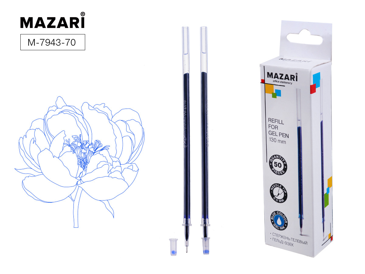 Стержень “Basic” с гелевыми чернилами обеспечивает ровное, комфортное письмо. Подходит к большинству неавтоматических гелевых ручек.Длина стержня составляет 130 мм. Диаметр пишущего узла 0,5 мм создает тонкую линию письма, равную 0,35 мм. Имеет игольчатый наконечник. Цвет чернил – синий