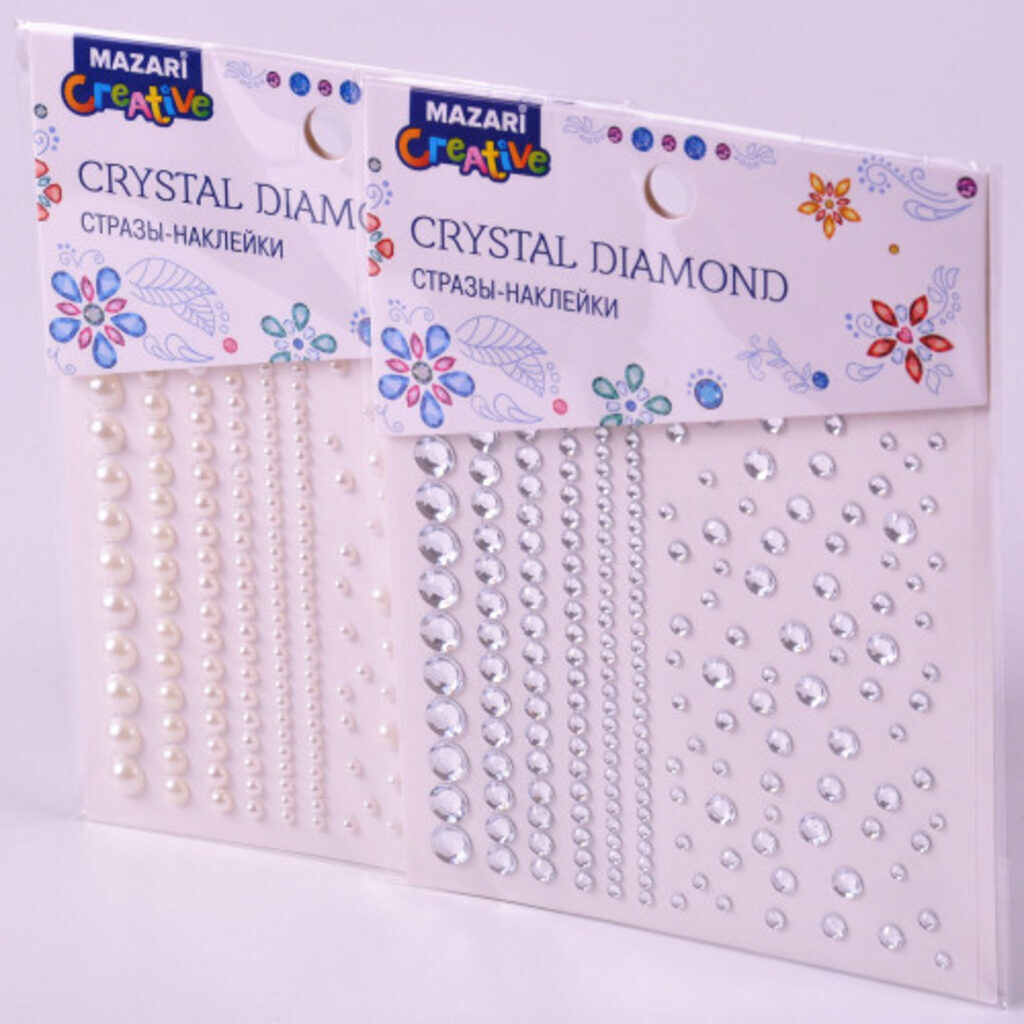 Декоративные элементы для творчества от бренда "Mazari" . Стразы упакованы в прозрачный пакет с подвесом. В упаковке полубусины разного размера. Цвет наборов в ассортименте. Блестящие стразы украсит любую Вашу поделку: открытку, шкатулку, одежду, аппликацию, обложку альбома. На каждый элемент уже нанесен клеящий слой, поэтому клей Вам не понадобится.