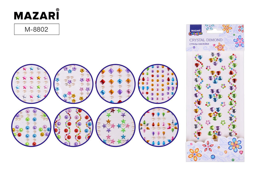 Декоративные элементы для творчества от бренда "Mazari" . Стразы упакованы в прозрачный пакет с подвесом. В упаковке полубусины разного размера. Цвет наборов в ассортименте. Блестящие стразы украсит любую Вашу поделку: открытку, шкатулку, одежду, аппликацию, обложку альбома. На каждый элемент уже нанесен клеящий слой, поэтому клей Вам не понадобится.