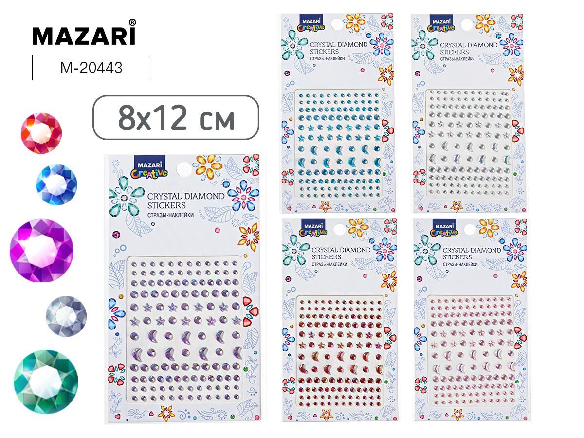 Декоративные элементы для творчества от бренда "Mazari" . Стразы упакованы в прозрачный пакет с подвесом. В упаковке полубусины разного размера. Цвет наборов в ассортименте. Блестящие стразы украсит любую Вашу поделку: открытку, шкатулку, одежду, аппликацию, обложку альбома. На каждый элемент уже нанесен клеящий слой, поэтому клей Вам не понадобится.