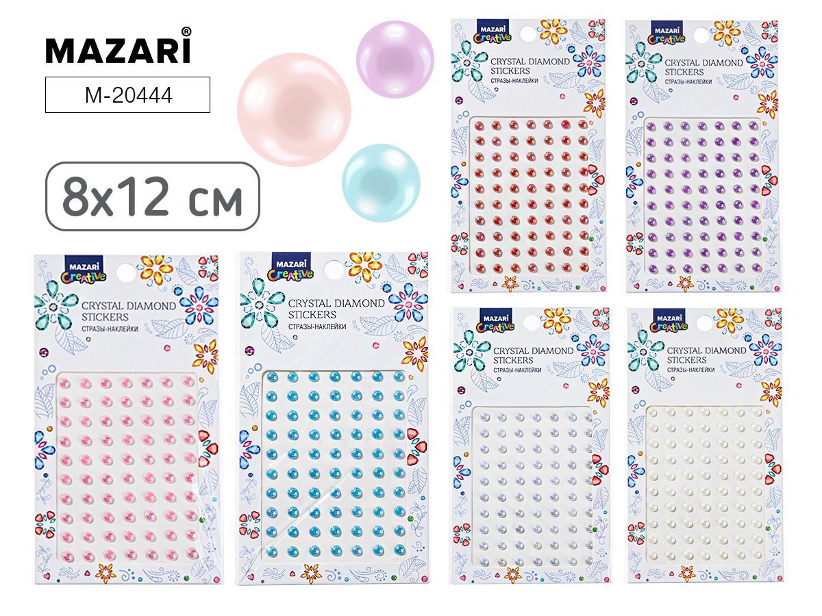 Декоративные элементы для творчества от бренда "Mazari" . Стразы упакованы в прозрачный пакет с подвесом. В упаковке полубусины разного размера. Цвет наборов в ассортименте. Блестящие стразы украсит любую Вашу поделку: открытку, шкатулку, одежду, аппликацию, обложку альбома. На каждый элемент уже нанесен клеящий слой, поэтому клей Вам не понадобится.