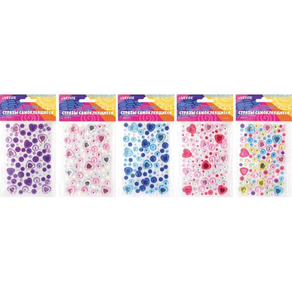 Стразы самоклеящиеся "deVENTE. Сердечки" акриловые, карточка 9,5x15 cм, в пластиковом пакете с блистерным подвесом