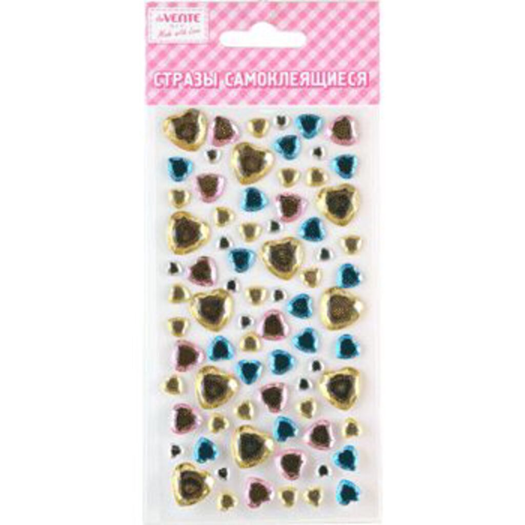 Стразы самоклеящиеся "deVENTE. Heart mix.2" цвет ассорти, карточка 8x16 см, в пластиковом пакете с блистерным подвесом