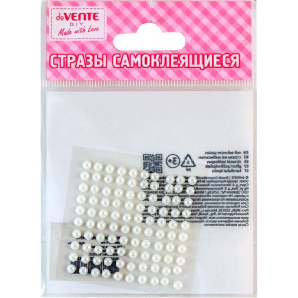 Стразы самоклеящиеся "deVENTE. Жемчуг" акриловые, размер 4 мм, 100 шт, цвет белый, в пластиковом пакете с блистерным подвесом