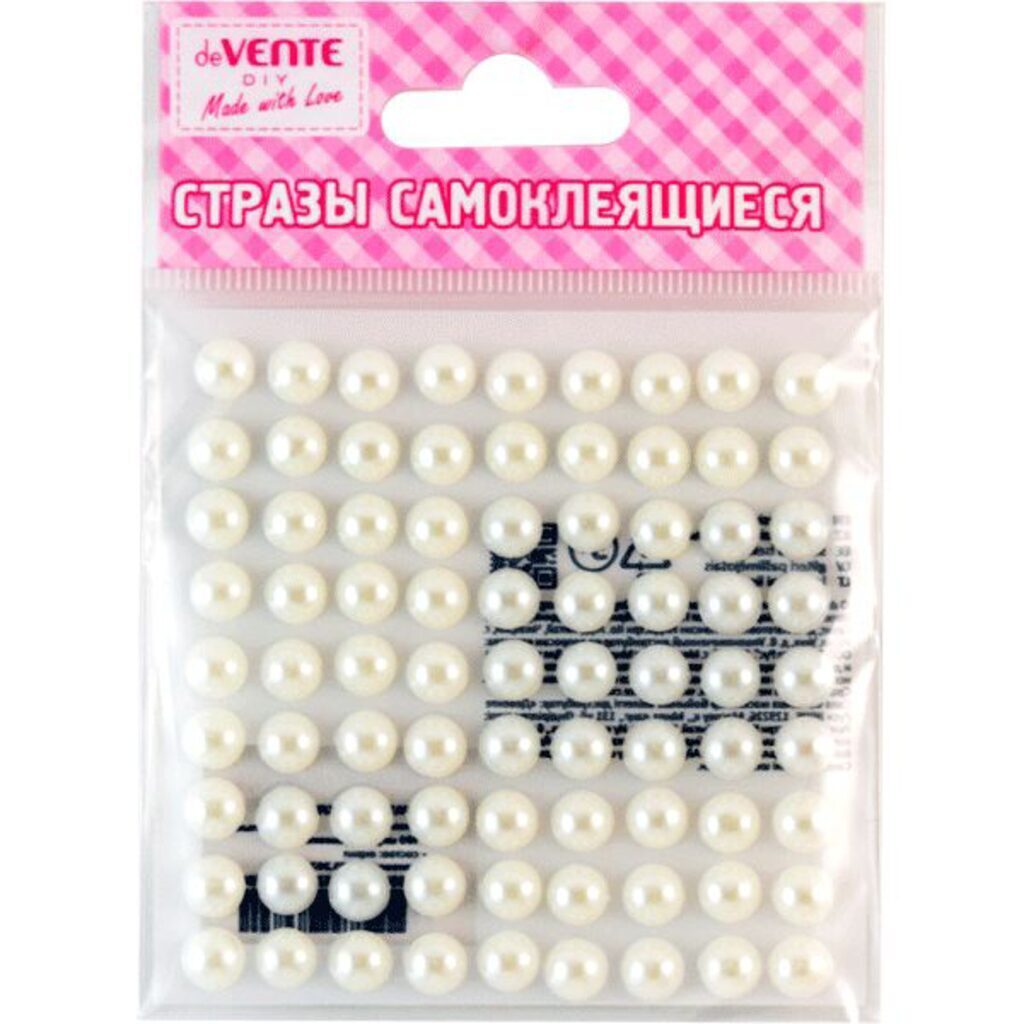 Стразы самоклеящиеся "deVENTE. Жемчуг" акриловые, размер 8 мм, 80 шт, цвет белый, в пластиковом пакете с блистерным подвесом