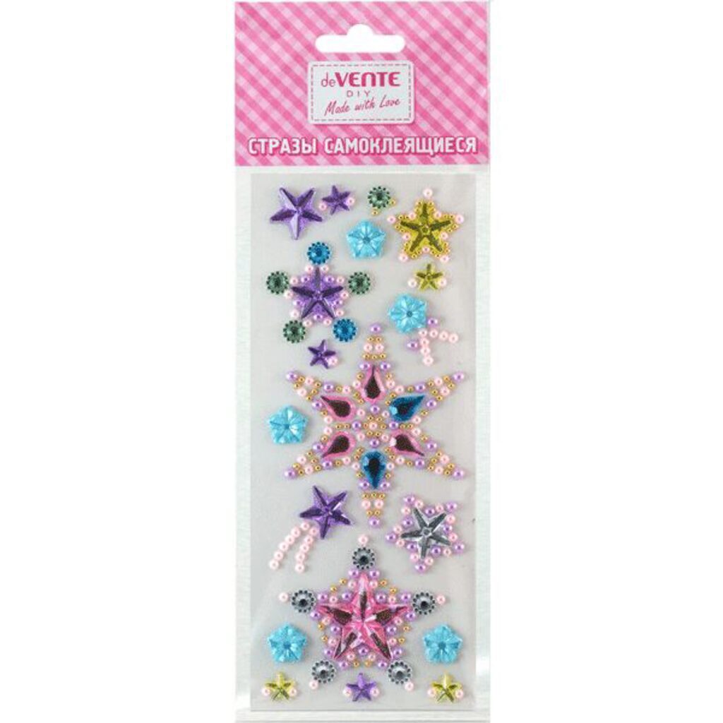 Стразы самоклеящиеся "deVENTE. Звезды" акриловые, карточка 7,5x18 cм, цвета ассорти, в пластиковом пакете с блистерным подвесом
