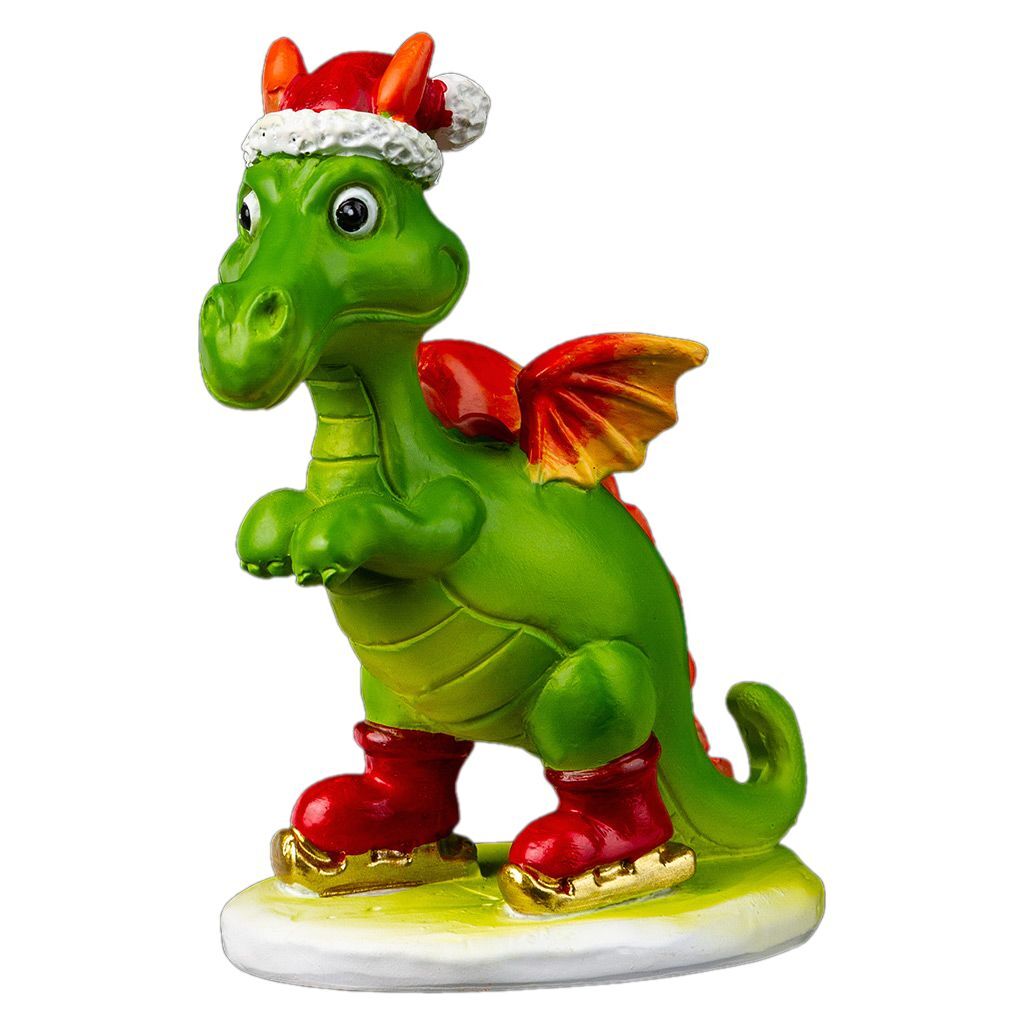 Дракоша в новогодней шапочке учится кататься на коньках. Персонаж отличается очаровательной мордочкой и яркими цветами. Настольный сувенир станет милым и уместным презентом к празднику. Групповая упаковка предназначена только для безопасной транспортировки и хранения.