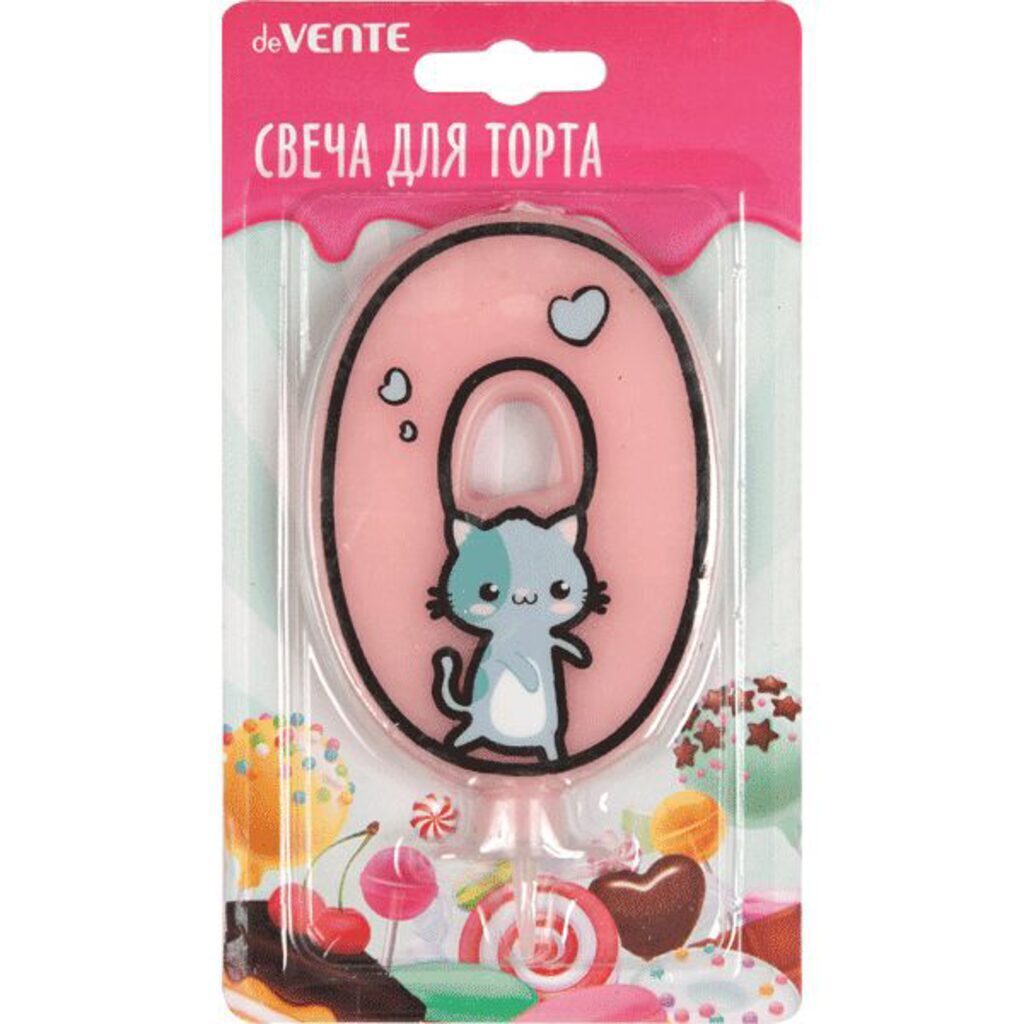 Свеча-цифра для торта "deVENTE. Котик" 0, размер свечки 9,1x6,6x1 см, с рисунком, розовая, в картонном блистере