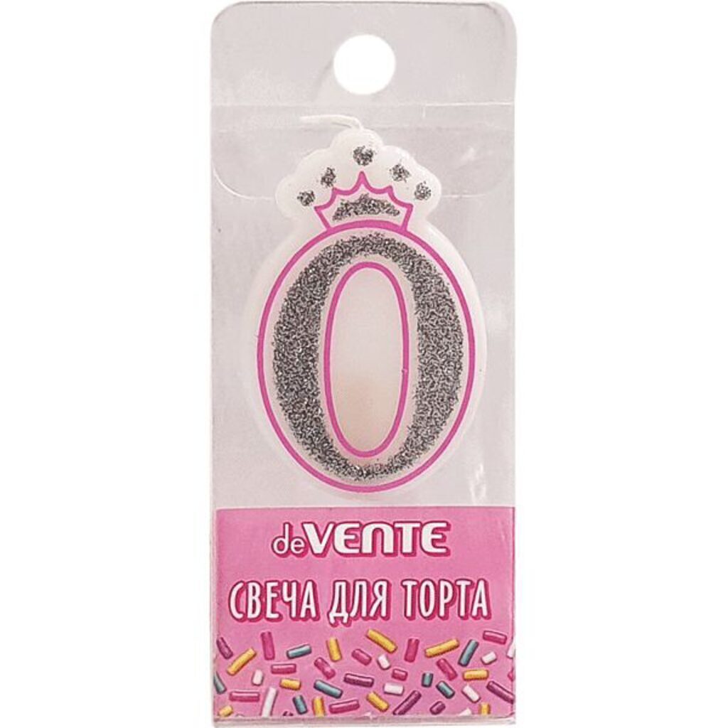 Свеча-цифра для торта "deVENTE. Розовая принцесса" 0, размер свечки 5,8x3,8x0,8 см с серебряным рисунком, в пластиковой коробке с подвесом