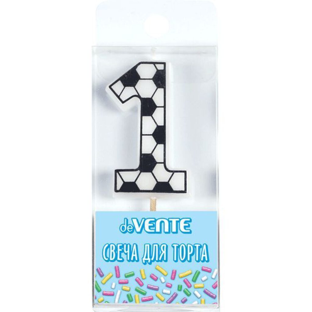 Свеча-цифра для торта "deVENTE. Футболист" 1, размер свечки 5x3,5x0,8 см с черно-белым рисунком, в пластиковой коробке с подвесом