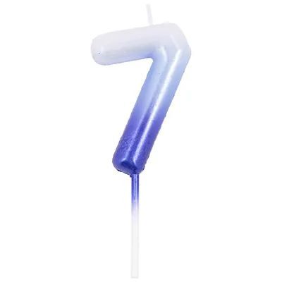 Декоративное украшение праздничного стола. Металлизированная свеча-цифра "7" с эффектом градиента. Высота свечи 6см. Внимание! Хранение и транспортировка при температуре выше 5 °C.