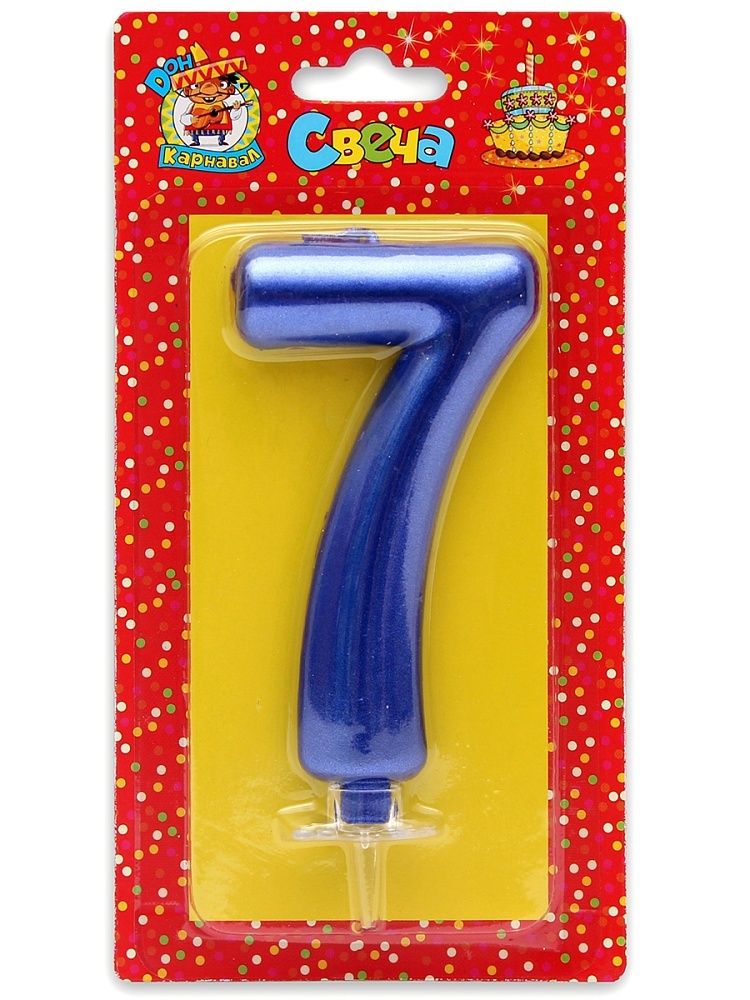 Свеча-цифра "7" Синий металлик"