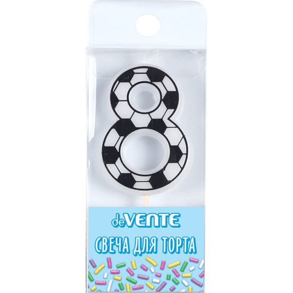 Свеча-цифра для торта "deVENTE. Футболист" 8, размер свечки 5x3,5x0,8 см с черно-белым рисунком, в пластиковой коробке с подвесом