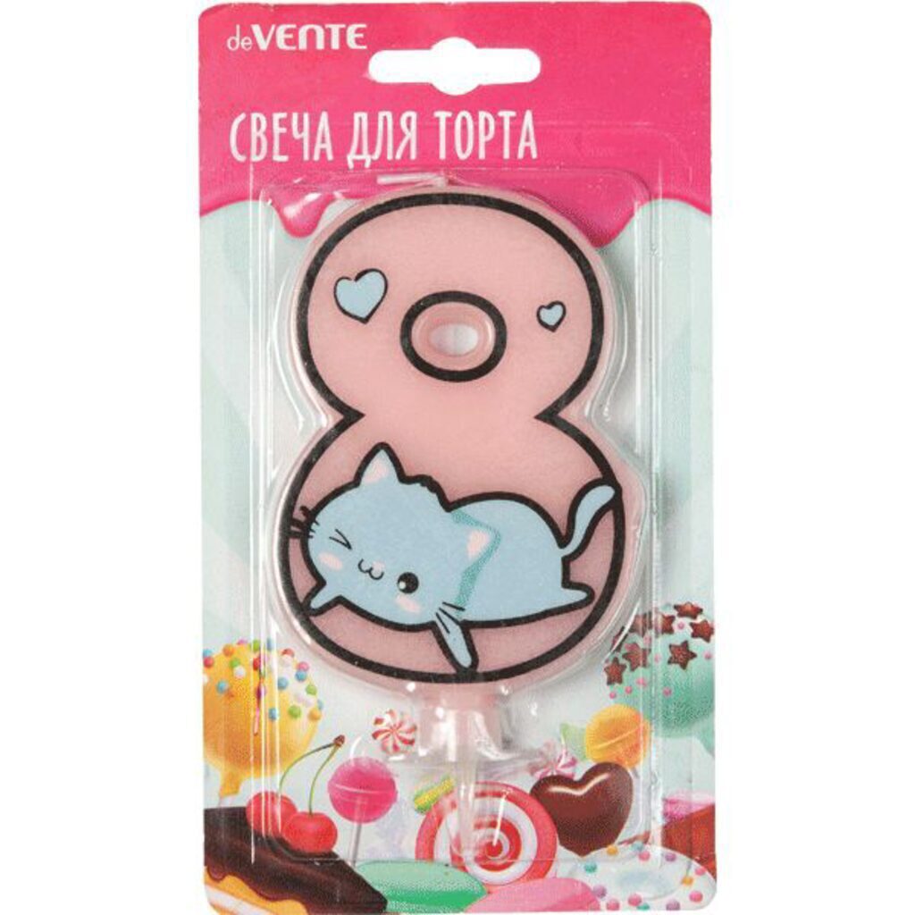Свеча-цифра для торта "deVENTE. Котик" 8, размер свечки 9,1x6,6x1 см, с рисунком, розовая, в картонном блистере