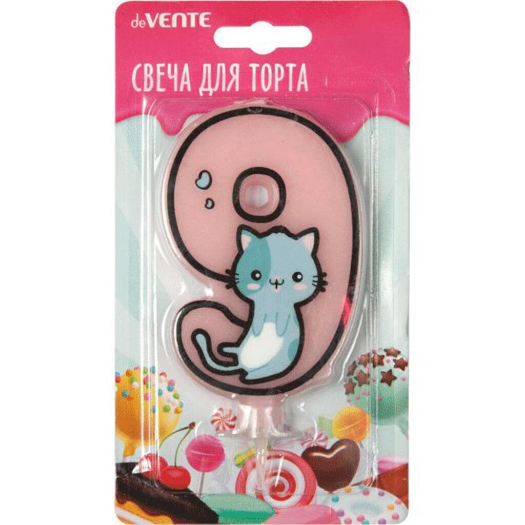 Свеча-цифра для торта "deVENTE. Котик" 9, размер свечки 9,1x6,6x1 см, с рисунком, розовая, в картонном блистере
