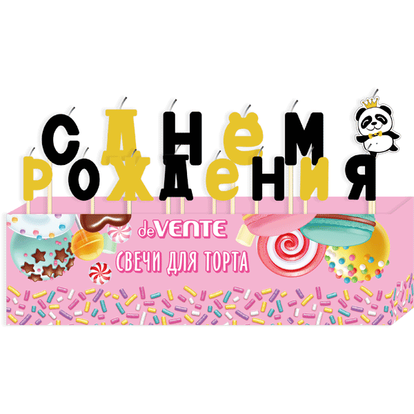 Набор свечей для торта "deVENTE. С днем рождения. Панда" размер букв и фигурки 2x2,8x0,6 см, в пластиковой коробке с подвесом