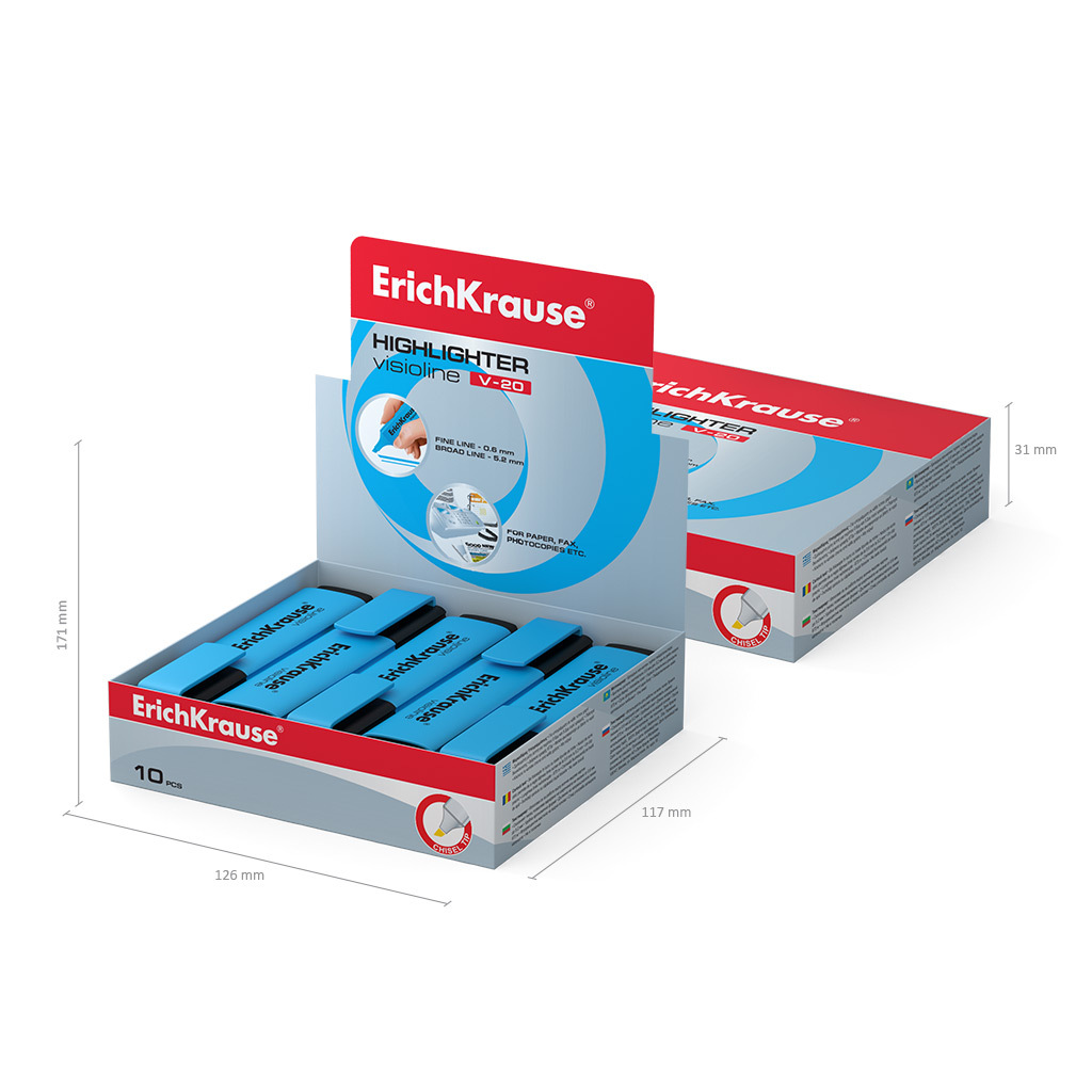 Текстмаркер ErichKrause Visioline V-20 Neon, цвет чернил голубой (в коробке-дисплее по 10 шт.)