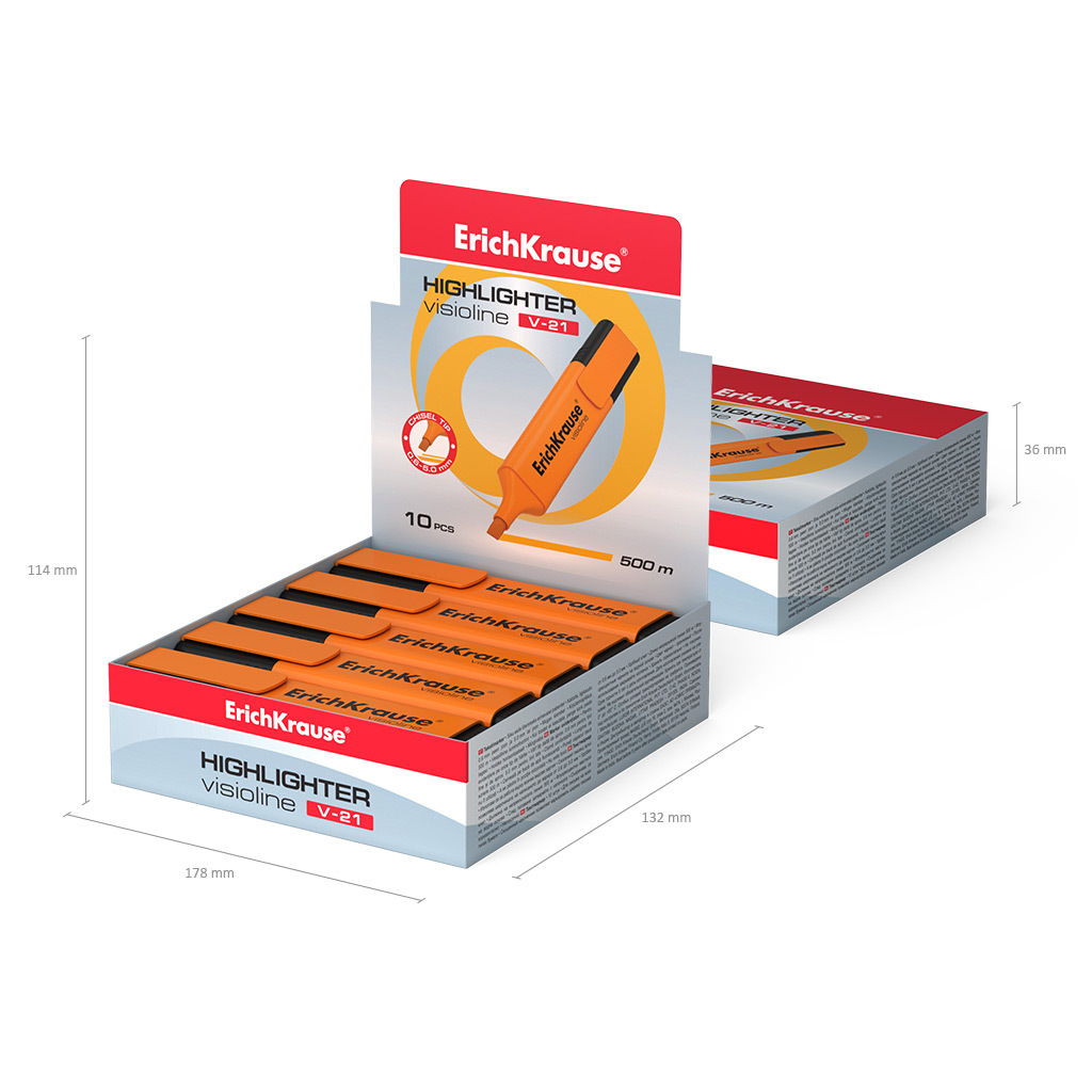 Текстмаркер предназначен для работы на всех типах бумаги, в том числе на бумаге для факсов и копировальных машин. Пишущий узел скошенной формы позволяет варьировать ширину письма. Широкая часть наконечника 5.0 мм удобна для выделения текста, а тонкая 0.6 мм – для подчеркивания. Цвет корпуса соответствует цвету чернил. Флуоресцентные чернила на водной основе быстро высыхают после нанесения и не оставляют следов на обратной стороне бумаги за счет тонкого и равномерного нанесения. Срок годности 5 лет.
