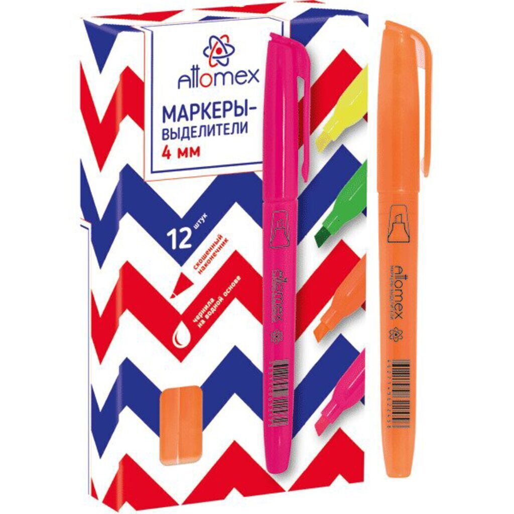 Маркер-выделитель "Attomex" круглый корпус с клипом, скошенный наконечник, ширина линии 1-4 мм, оранжевый