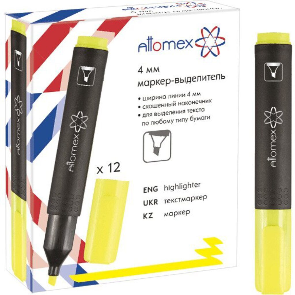 Маркер-выделитель "Attomex" плоский корпус с клипом, скошенный наконечник, ширина линии 1-4 мм.