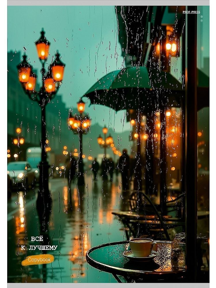Тетрадь А4 48л кл. скоба Проф-Пресс "Дождь на городской улице" (203*273мм)