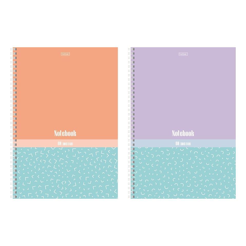 Тетрадь А4 80л кл. гребень Hatber "Скобочки" перф.на отрыв, цв.срез, софт-тач, 2диз.*
