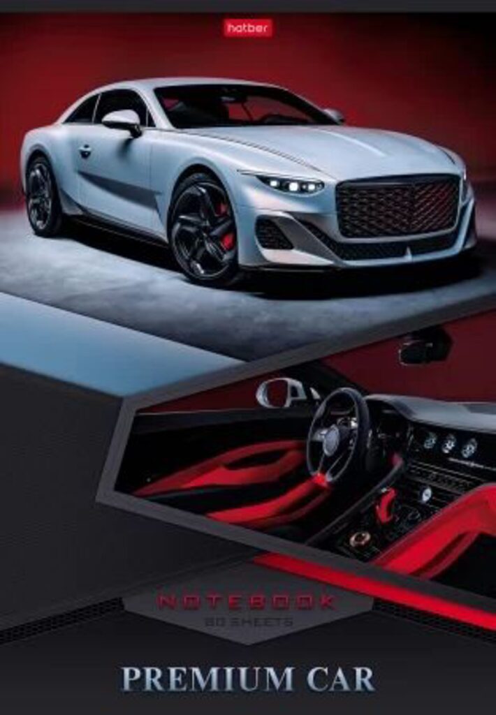 Тетрадь А4 80л кл. скоба Hatber "Премиальные авто" глянц.лам.*