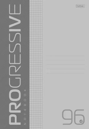 Тетрадь А4 96л кл. скоба Hatber пласт.обл."Progressive. Серая" белизна 100%