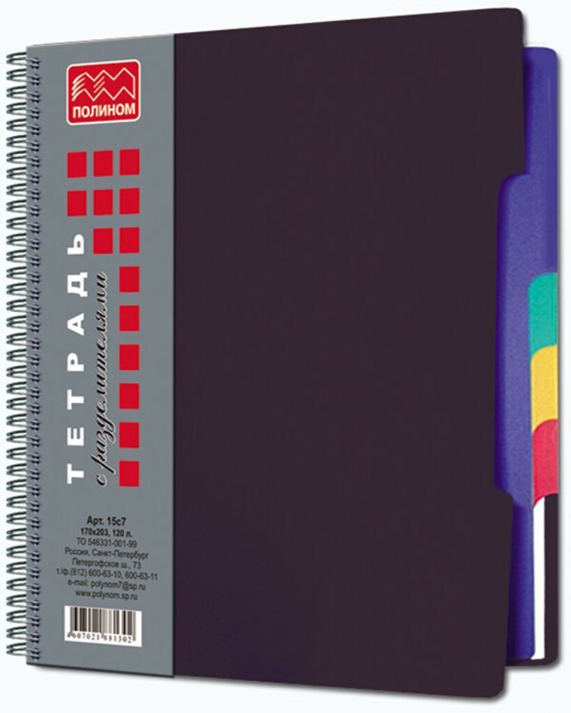 Тетрадь А5 120л кл. гребень Полином "Черная" с цв.разделителями, БЕЗ ПОЛЕЙ