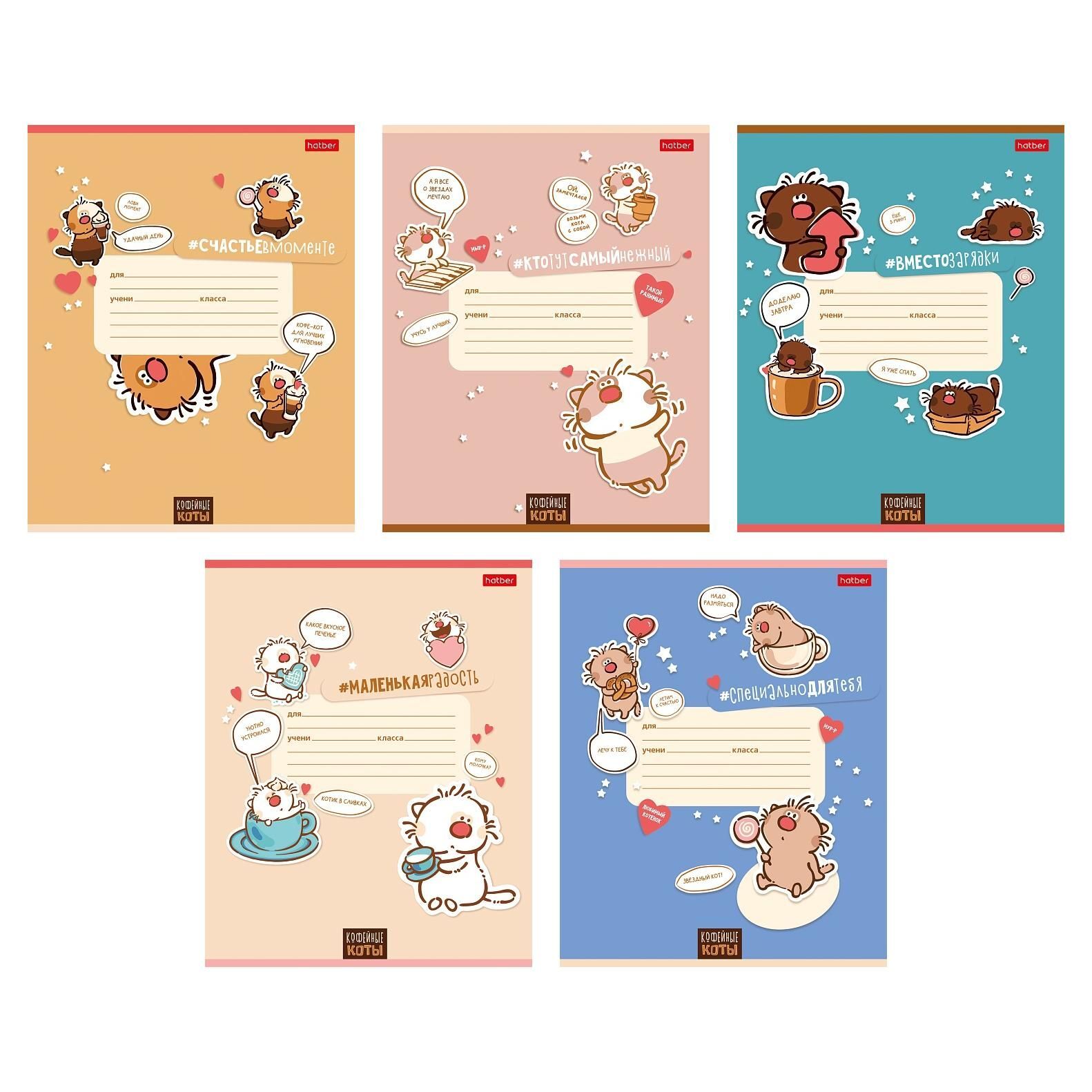 Тетрадь А5 12л кл. Hatber "Кофейные коты. Выпуск №2" 5 диз.в блоке