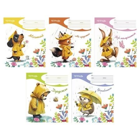 Тетрадь А5 12л кл. Hatber "Под дождиком" 5 диз.в блоке, белизна 100%