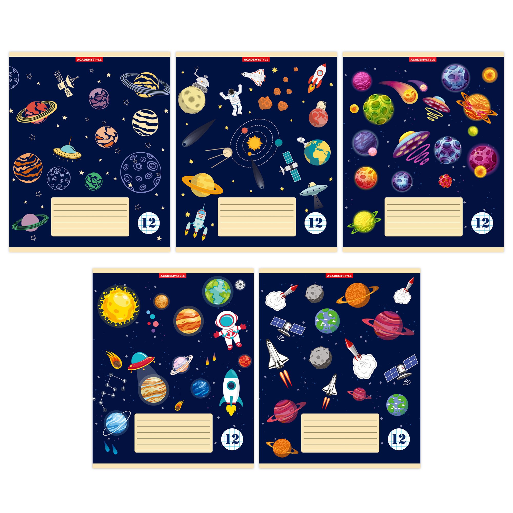 Тетрадь А5 12л кл. Полиграф Принт "Яркие планеты" УФ лак, белизна 100%