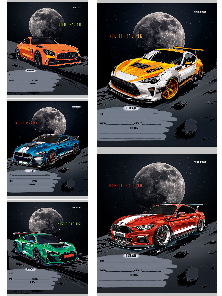Тетрадь А5 12л кл. Проф-Пресс "Авто и луна" 5 диз.в спайке, белизна 100%