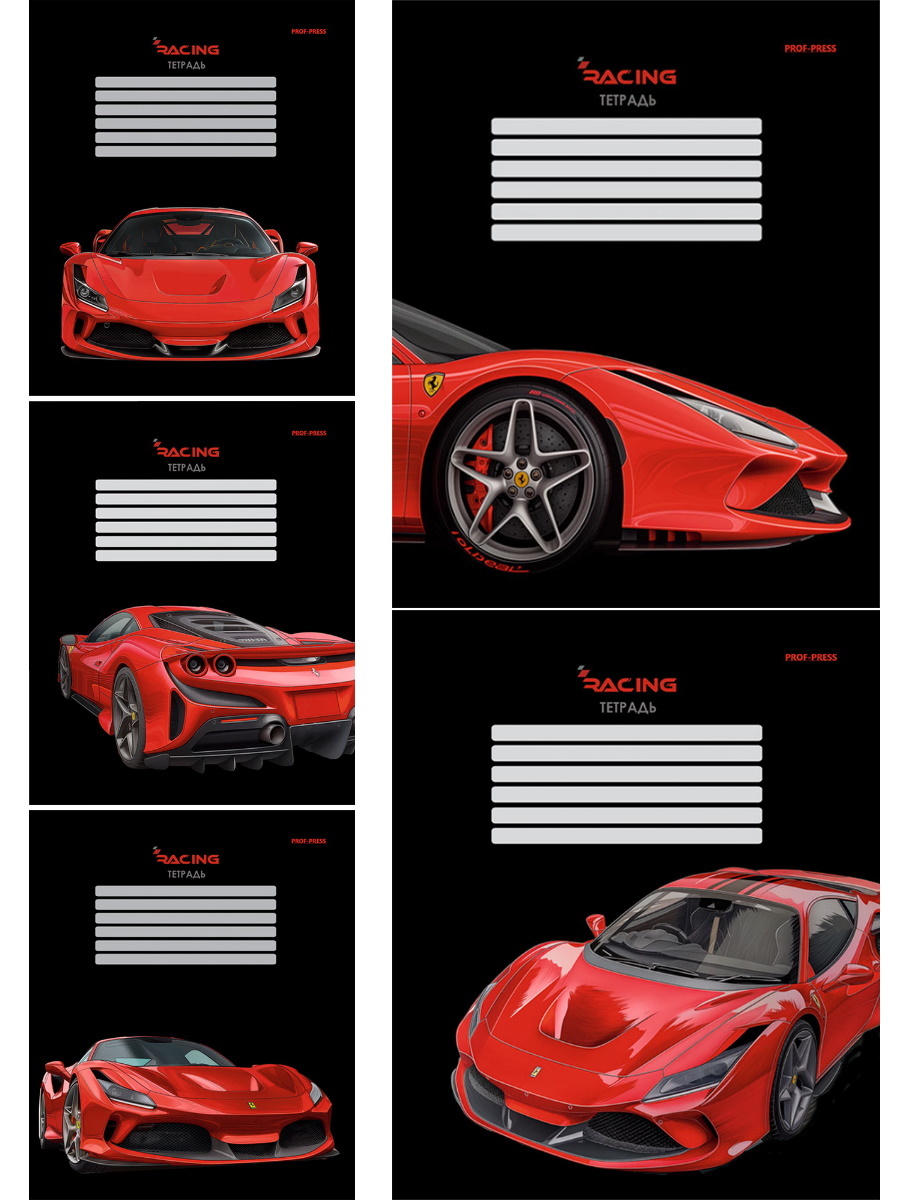 Тетрадь А5 12л кл. Проф-Пресс "Шикарная машина" 5 диз.в спайке, белизна 100%