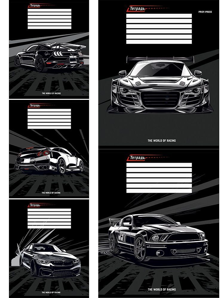 Тетрадь А5 12л косая лин. Проф-Пресс "Микса авто" твин.лак, 5 диз.в спайке