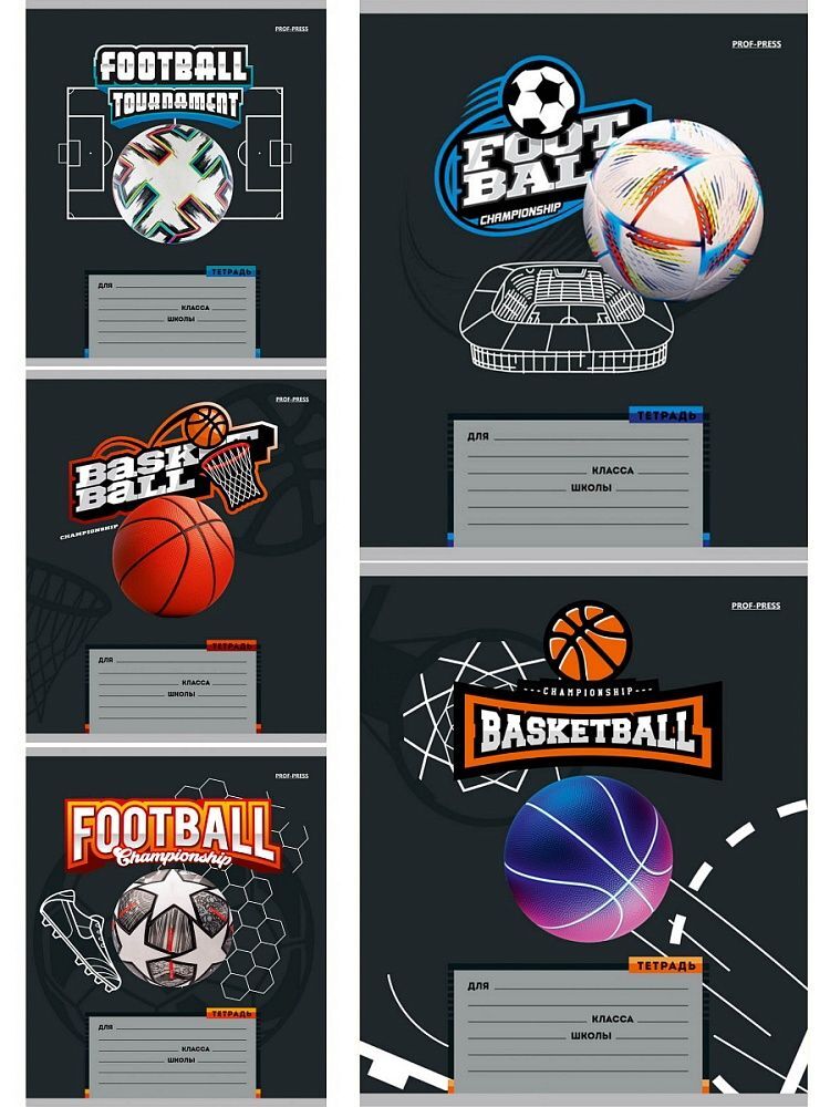 Тетрадь А5 12л косая лин. с доп.горизонт.лин. Проф-Пресс "Спорт и мяч" 5диз.в сп.